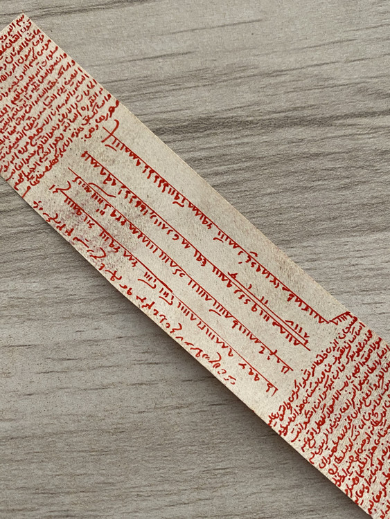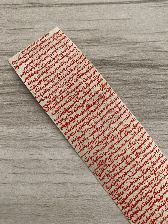 - نوشته شده با جوهر تشکیل شده از: گلاب، زعفران، تربت سید الشهدا و آب سرداب مقدس حرم حضرت عباس (علیهما السلام)