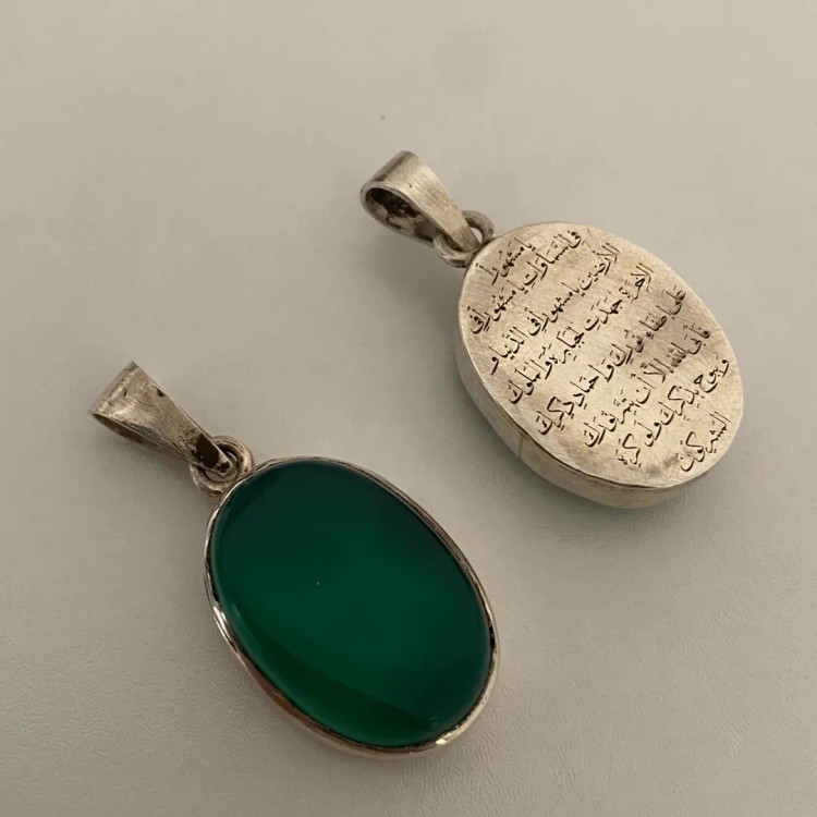 پلاک نقره خاص با نگین عقیق سبز دارای حرز کبیر امام جواد علیه السلام ،محصولی شیک و معنوی 🌸💚